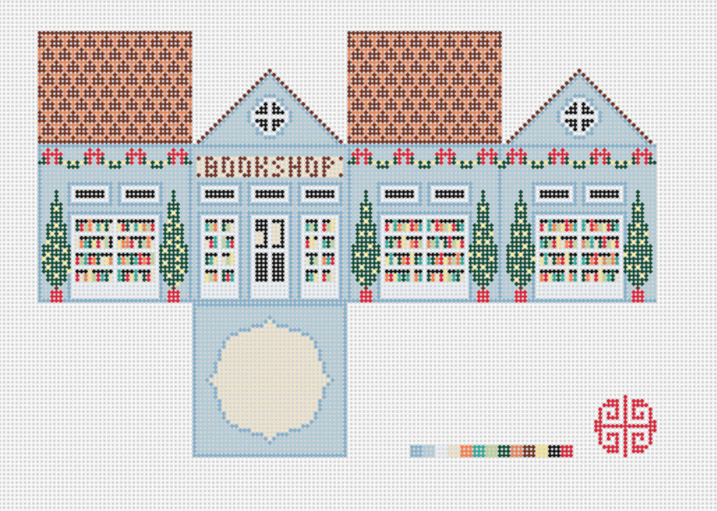 This limited edition Little Shop/ House 3D Ornament Needlepoint canvas is stitch printed onto 13 mesh Zweigart canvas. Design area is  approximately 7.5" x "11. When Folded together ornament size is approximately 2.75" x 2.75" x 4".