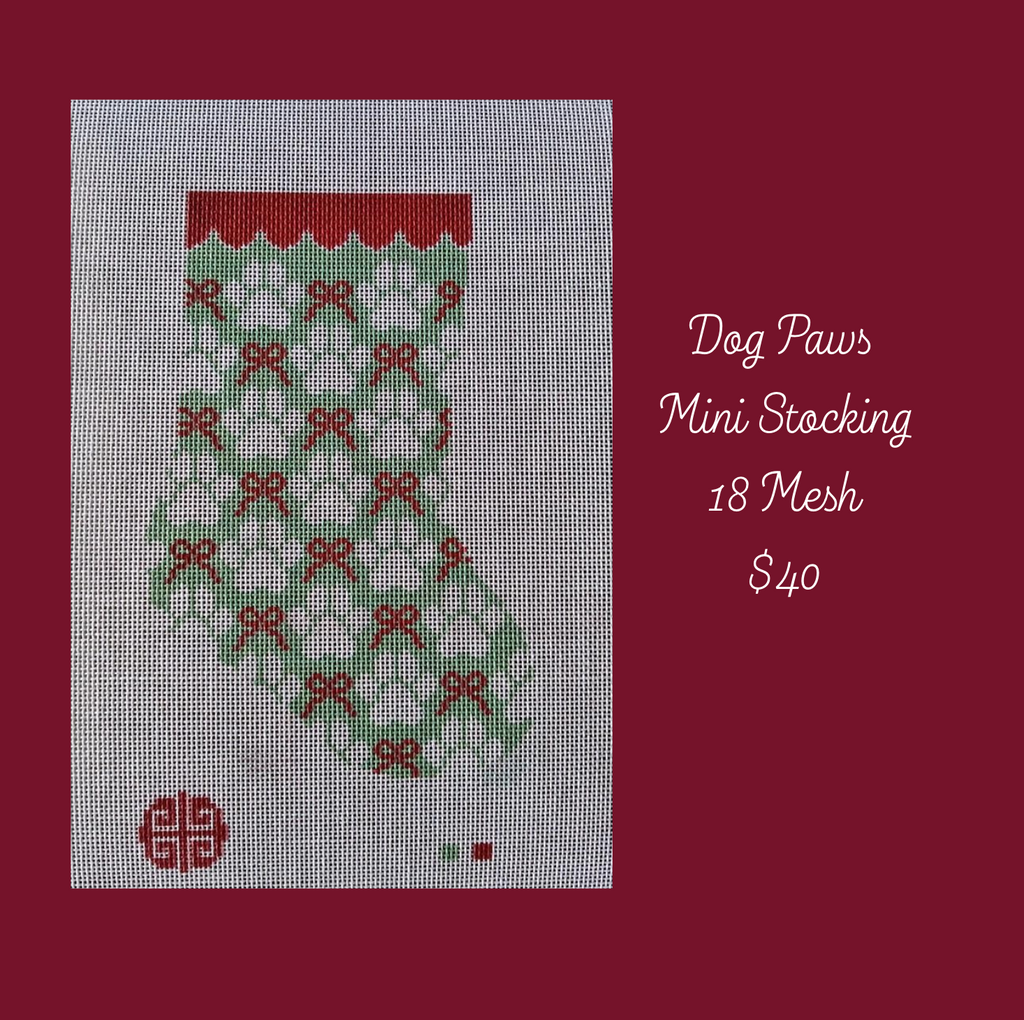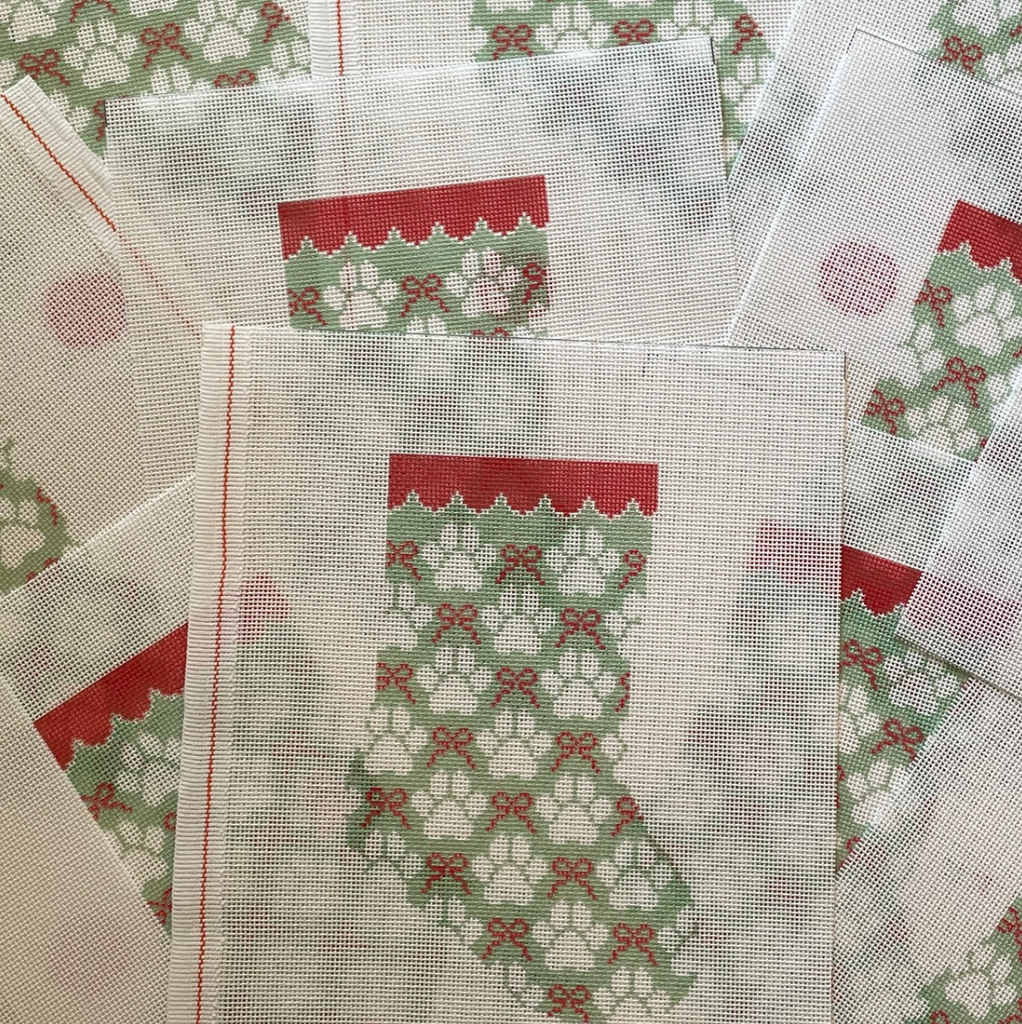 This limited edition 18 Mesh Mini Stocking Needlepoint canvas is printed onto 18 mesh Zweigart canvas. Design area is approximately 7" x 4.5".