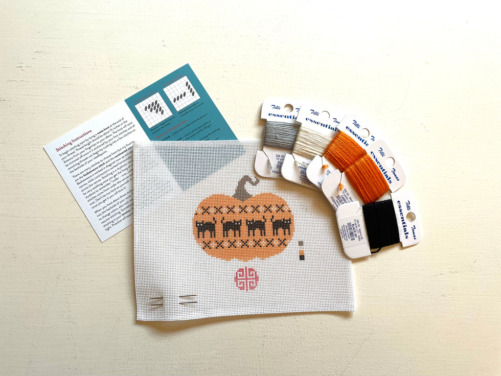 Black Cats Mini Pumpkin 18 mesh Needlepoint Kit