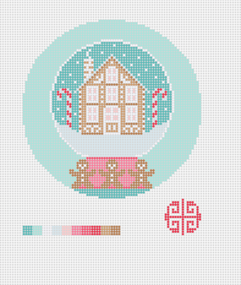 This 4" round Gingerbread Snowglobe design is printed into 18 mesh canvas.