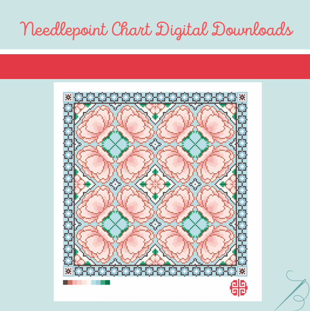Needlepoint Chart Digital Download: Peony Pillow / Large Tray