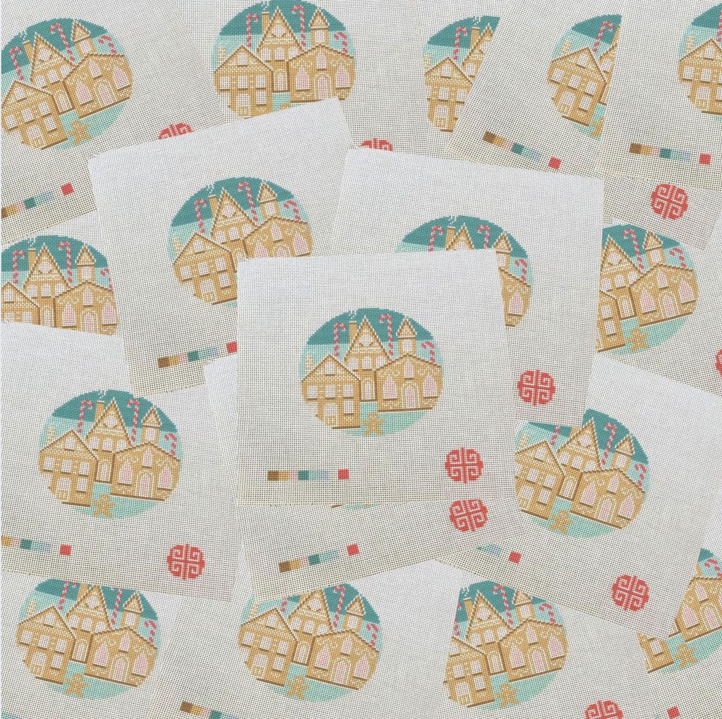 This It Takes a Gingerbread Village design is printed into 18 mesh canvas.