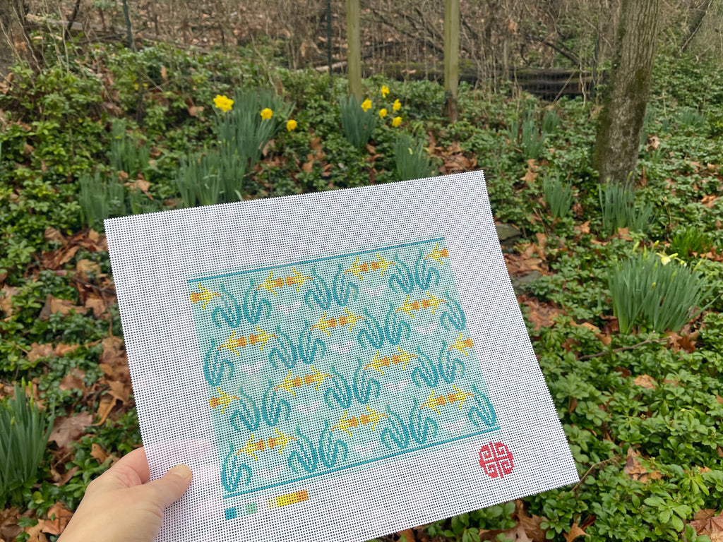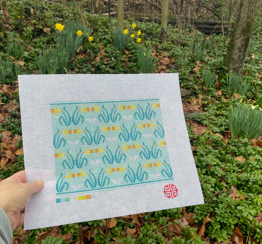 Stitch printed by @pixelsoncotton a woman owned boutique print house in Colorado where they print off a limited run of beautifully stitch printed needlepoint canvases. The quality is amazing ensuring you a blissful stitching experience.