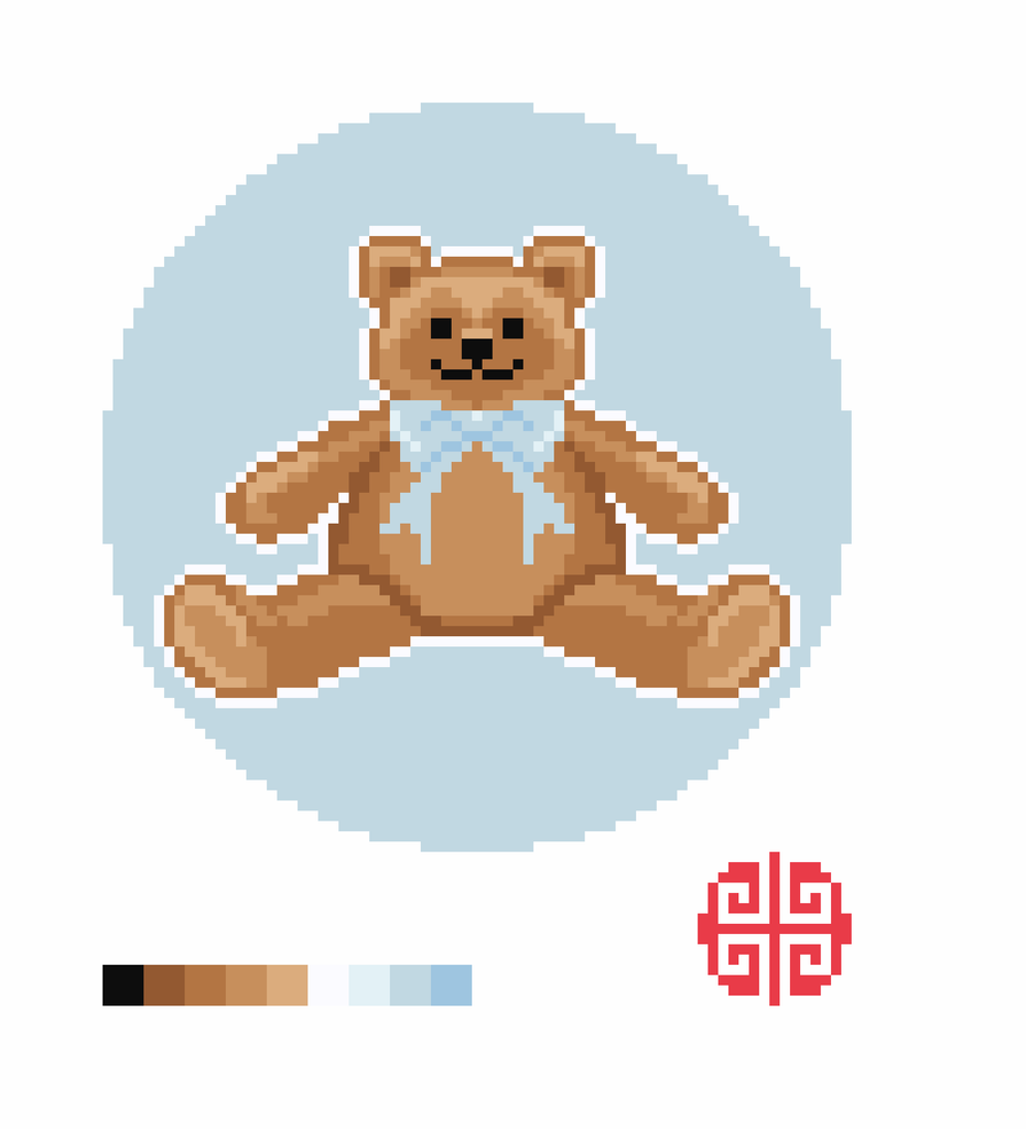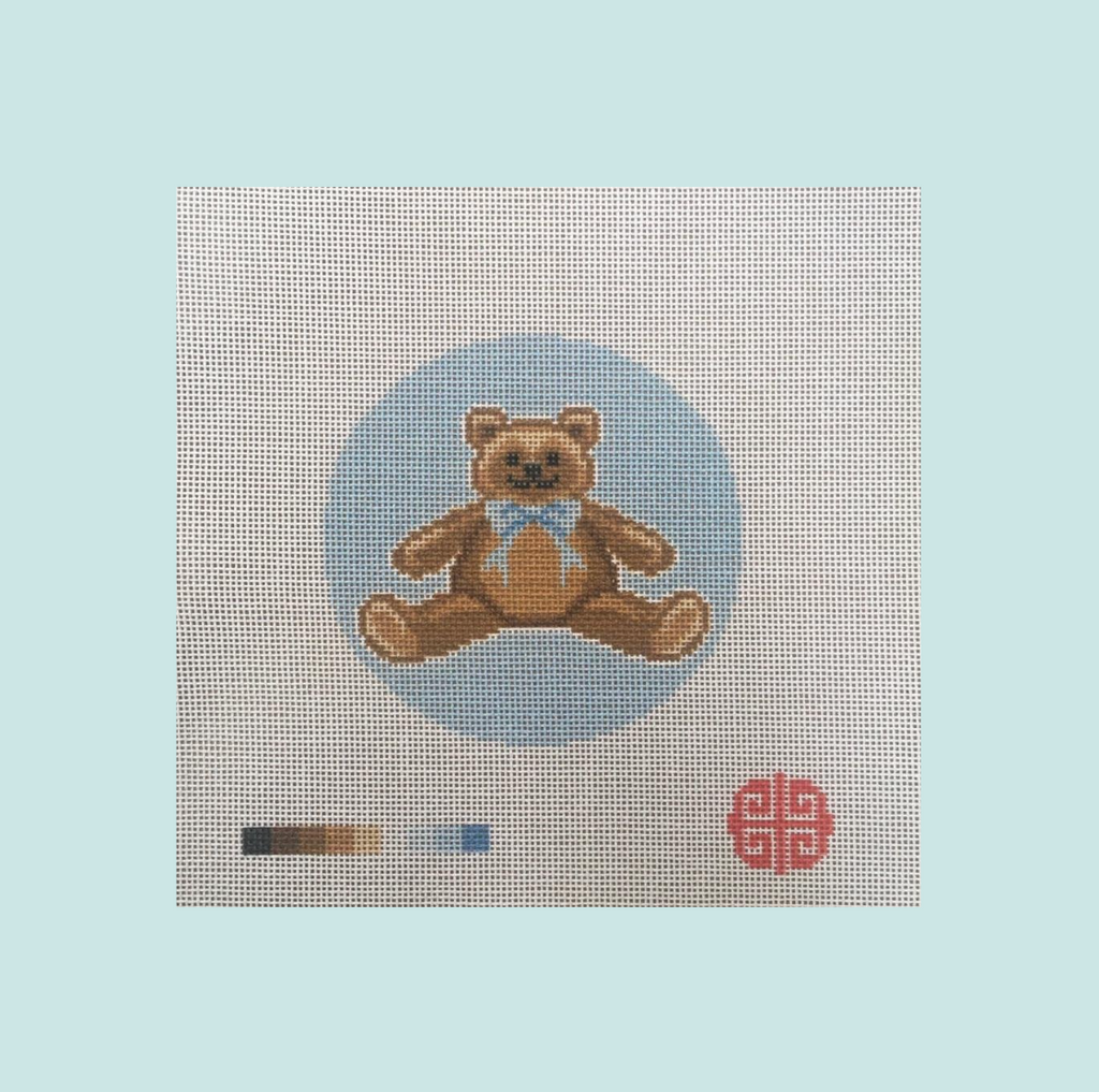 This Teddy with Blue Bow design is printed into 18 mesh canvas.